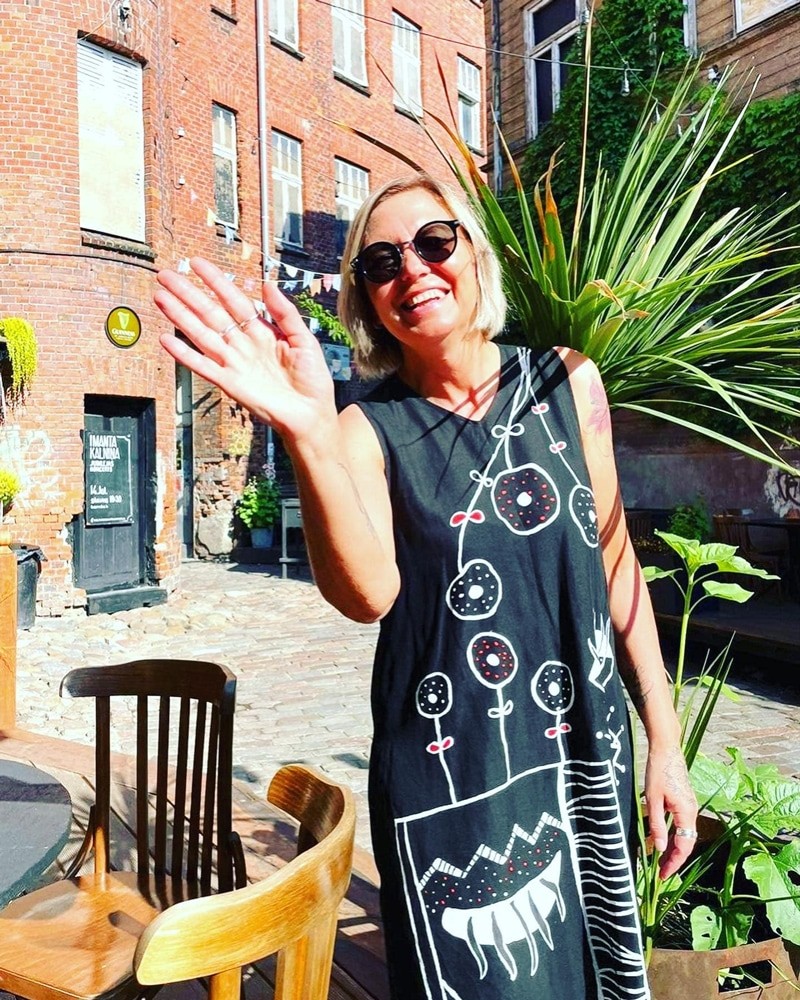 Working in acrylic, ink, mixed media, and textile paints, Agita's practice spans fine art, wearable pieces, murals, and digital collage. Her work has been exhibited at Edinburgh Printmakers (Castle Mills: Then & Now), Aberdeen Art Fair, Edinburgh Art Fair, and in group shows across Scotland as part of the Orion Art Collective and The Artists' Pool.