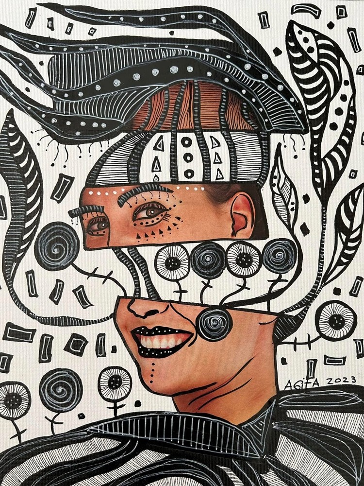 Inspired by artists like Frida Kahlo and Pablo Picasso, Agita sees art as a way to transform the overlooked and embrace imperfection. Her purpose, as she describes it, is simple: "To be happy, to create from the heart, and to inspire others through my art."